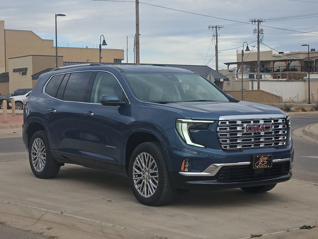 Downpour Metallic 2026 GMC Acadia Denali Adaptive Cruise Control FWD Sheer/Very Dark Atmosphere Leather. FWD 8-Speed Automatic 2.5L DOHC20/26 City/Highway MPG