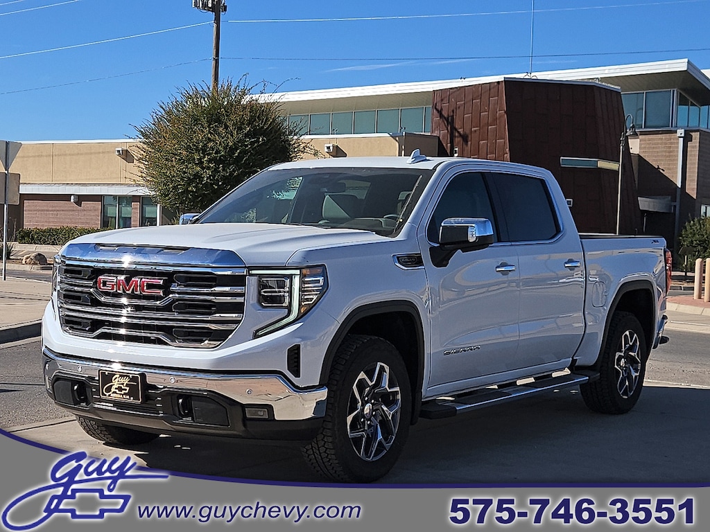 Glacier White Tricoat 2026 GMC Sierra 1500 SLT Adaptive Cruise Control 10-Speed Automatic 4WD Dark Walnut Leather. 4WD 10-Speed Automatic EcoTec3 5.3L V8