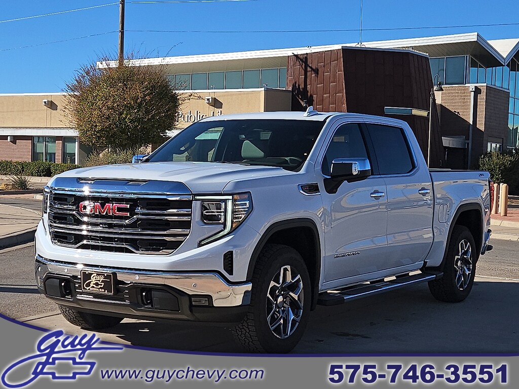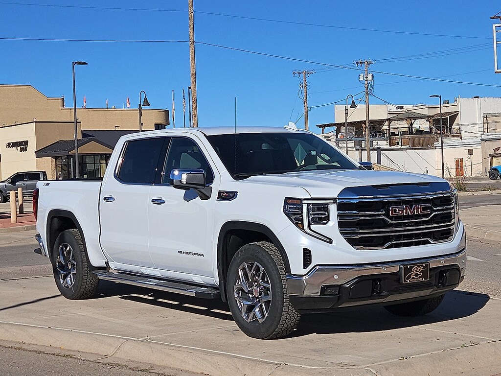 Glacier White Tricoat 2026 GMC Sierra 1500 SLT Adaptive Cruise Control 10-Speed Automatic 4WD Dark Walnut/Slate Leather. 4WD 10-Speed Automatic EcoTec3 6.2L V8