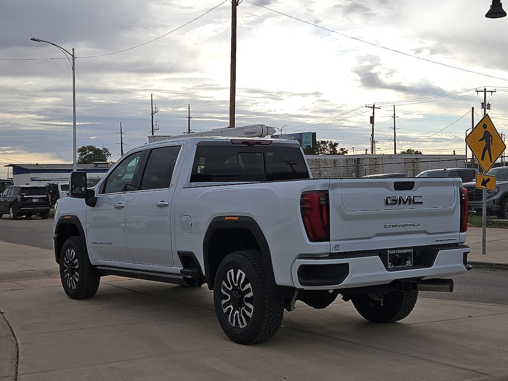 Glacier White Tricoat 2026 GMC Sierra 2500HD Denali Ultimate Adaptive Cruise Control 10-Speed Automatic 4WD Alpine Umber Leather. 4WD 10-Speed Automatic Duramax 6.6L V8 Turbodiesel